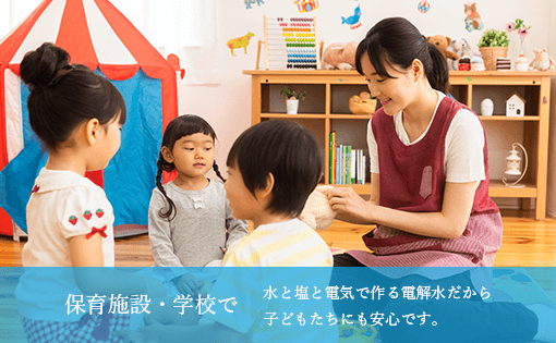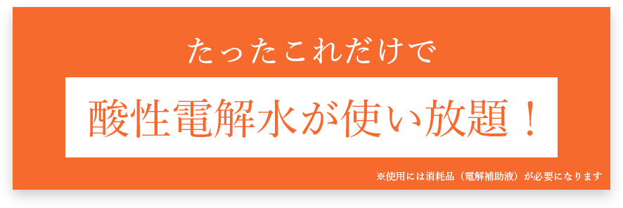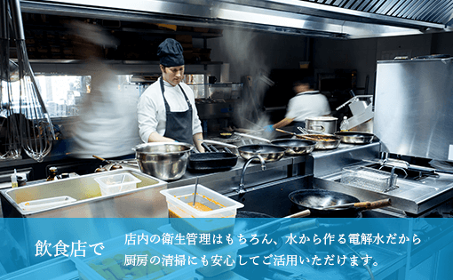水道水と電解補助液を電気分解して生成される高い除菌効果を持った水です。安全性も高く、洗浄や除菌用水として広く活用されています。
