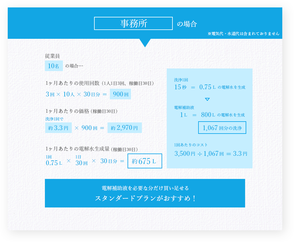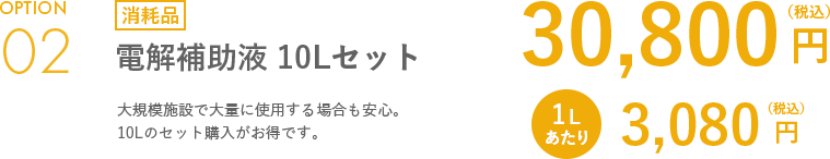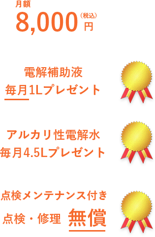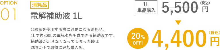 電解水をたくさんご使用いただいた月も安心。レンタルご契約中は30%OFFで補助液を追加購入いただけます。
