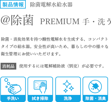 電解水給水器 「@除菌 PREMIUM 手・洗う」が