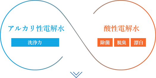 二つの水のチカラで洗浄と除菌のW効果!