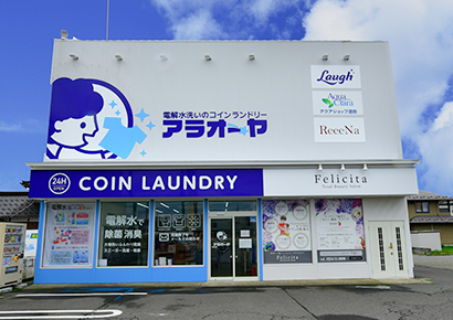 アラオーヤでは、より多くの方に電解水を知っていただき、その効果を実感していただきたいという想いから、電解水で洗濯できるコインランドリーを運営しております。