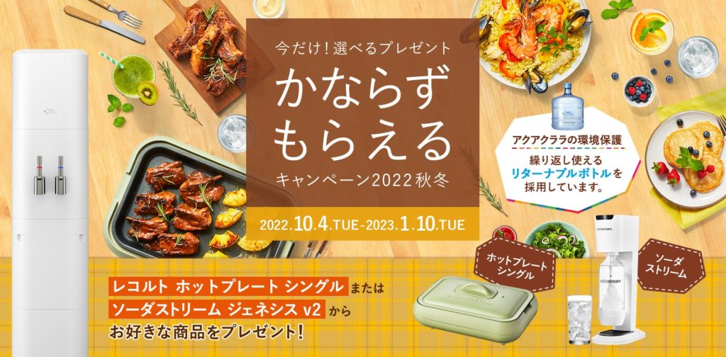期間中、アクアクララに新規でご入会いただいた方にもれなくプレゼント!